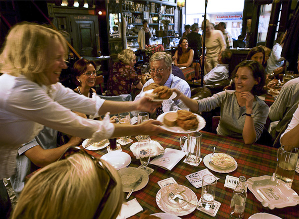 Nur in der "Henne" gibt es die legendären – nach Geheimrezept – gebratenen krossen Jungmasthähnchen, die mit dem unverwechselbaren Kartoffel- und Krautsalat gereicht werden.